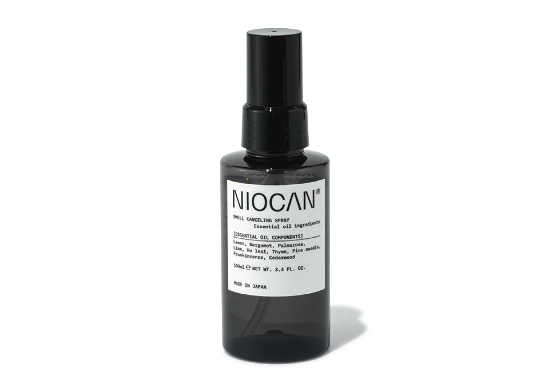 強い香料でニオイを抑えるのではなく、天然精油の力で無臭空間を作り上げる消臭除菌スプレー。アルコールフリーで人やペットがいる空間でも安心して使える。NIOCANスプレー100ml ¥1,870(ニオキャン/第一工業製薬 TEL. 0120-108-933)