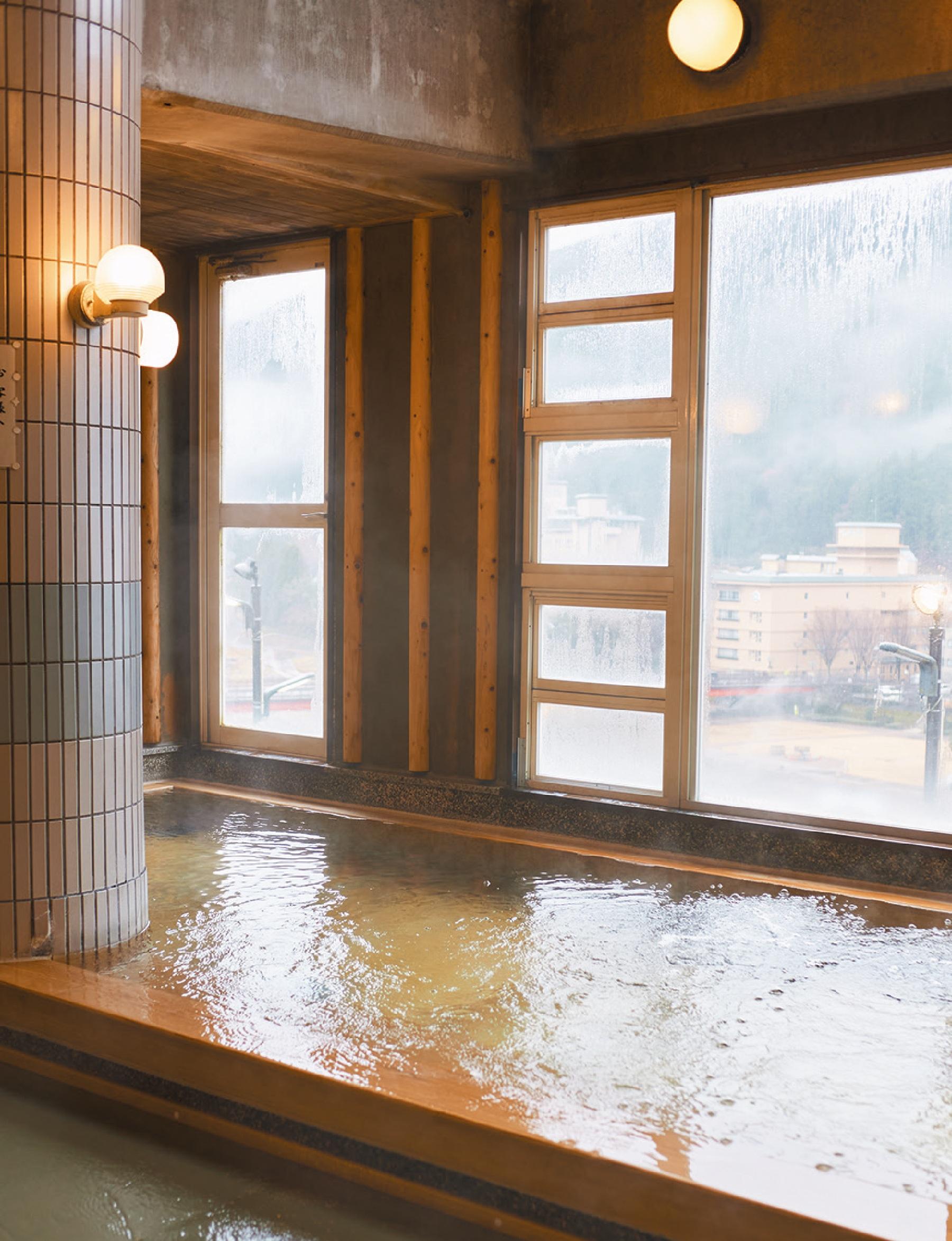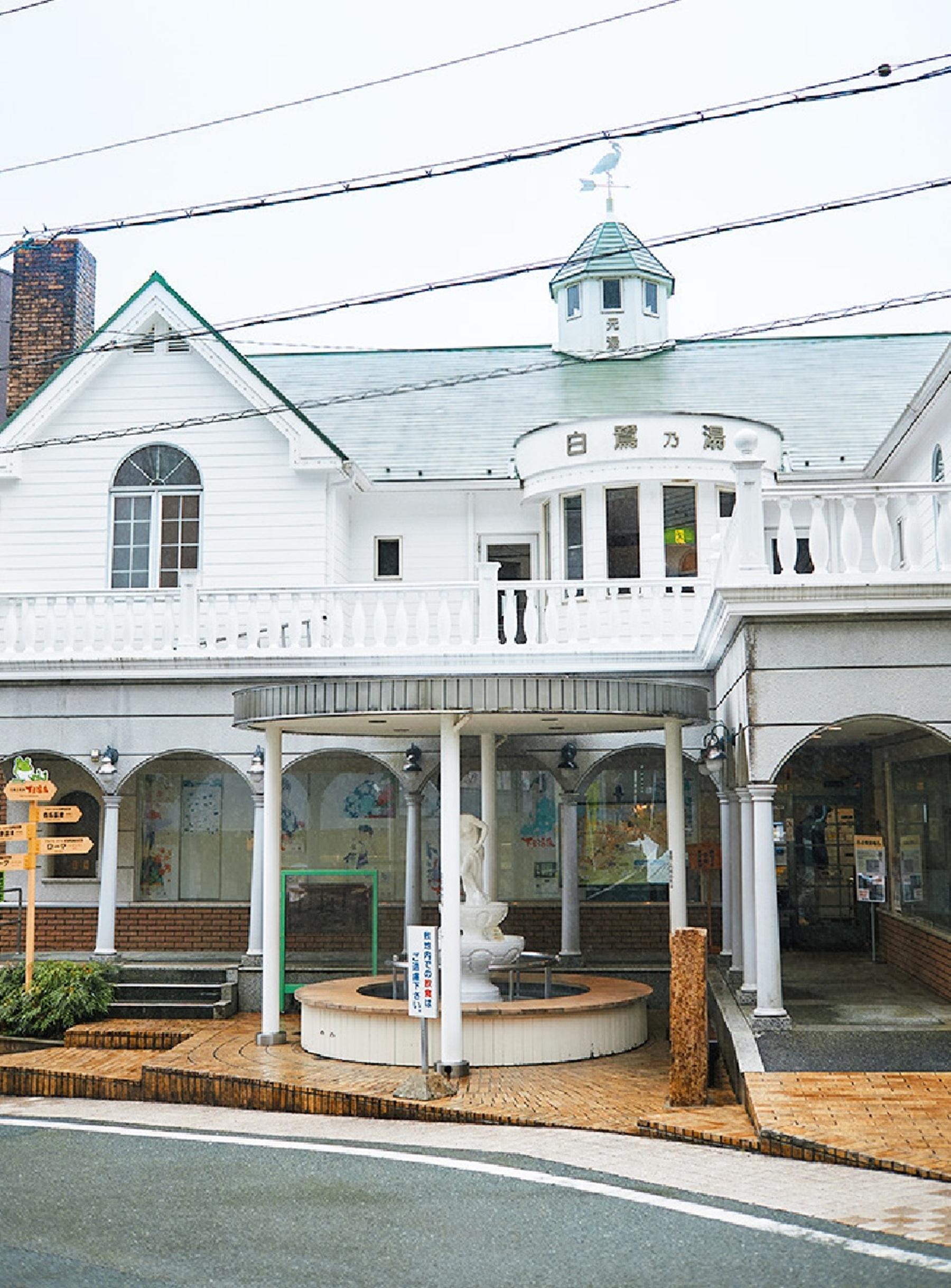 創業した大正時代を彷彿させる建物が目を引く日帰り湯。名前の“白鷺乃湯”は、「一羽の白鷺が舞い降り、温泉の湧く場所を村人に知らせた」という伝説から。肌に絡むようなまろやかなお湯は、長年親しまれているのも納得な心地よさ。到着後や帰る前に気軽に寄れるのが嬉しい。