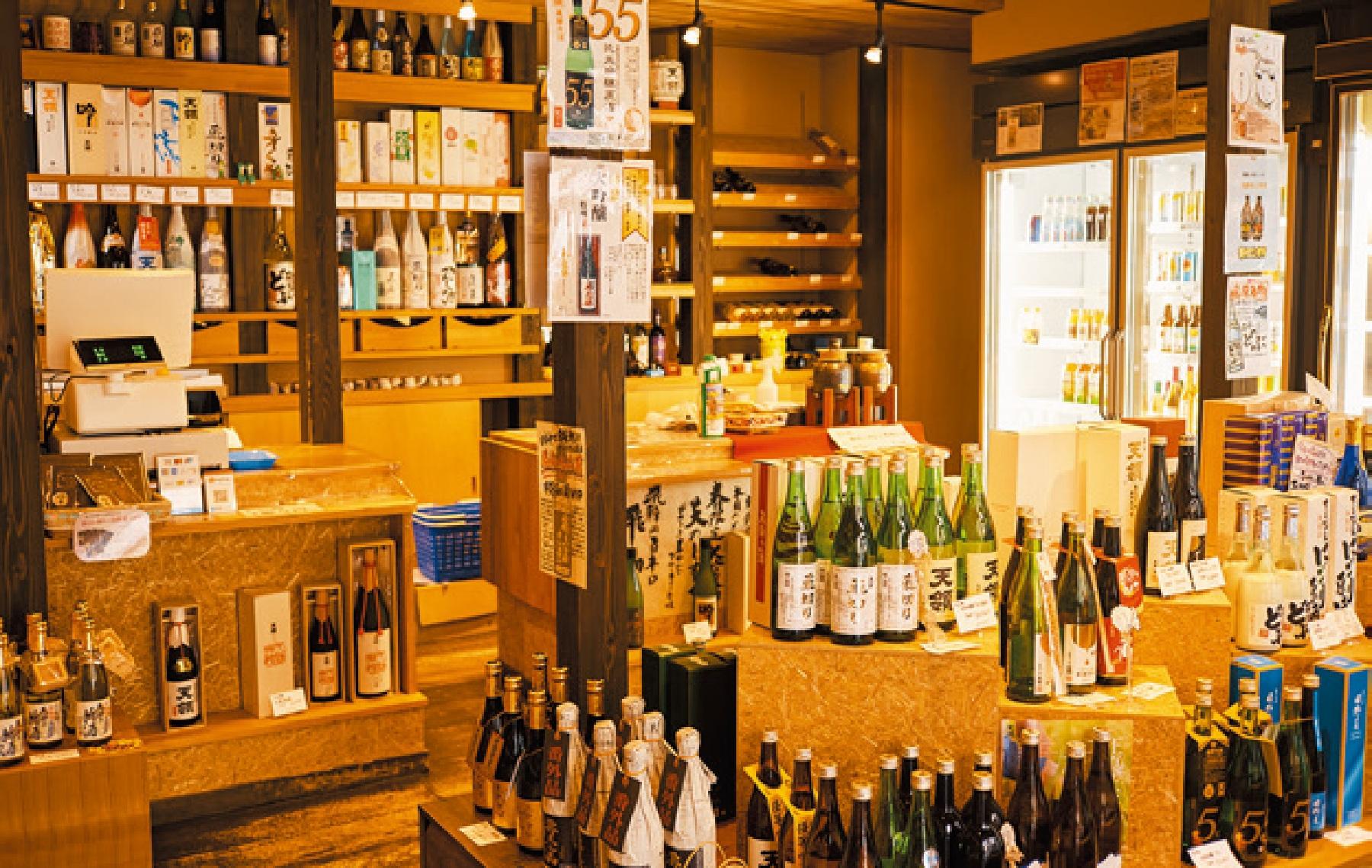 大正7年に創業した老舗酒店で、地酒と地ビールを物色。下呂の歴史ある蔵元といえば、「天領酒造」と「奥飛騨酒造」。日本酒好きなら、まずこの2つの酒造のお酒を探してみよう。他に、クラフトビールや飛騨りんごと飛騨トマトを使った100%ジュースなどもあり。お土産探しにも。