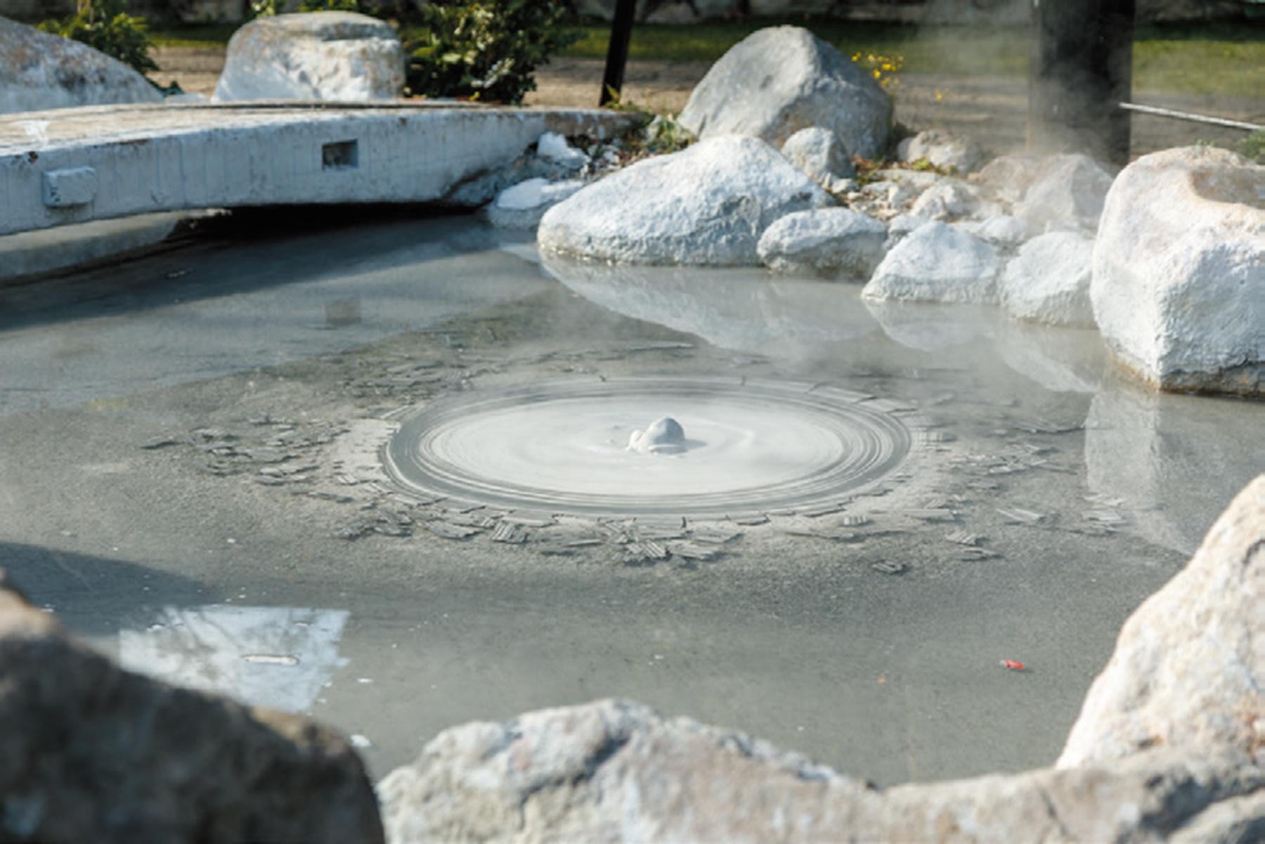 まるで坊主頭なフォルムを描き、沸々と湧く熱泥。“鬼石”は地名から付けられた。泉温約99°Cと決して可愛くないが、大小も形もさまざまにポコポコと生まれる姿は愛らしくなってくる。4つの泉があるので、一期一会の坊主頭をぜひ写真に収めてみて。施設横には温泉「鬼石の湯」も(別料金)。住所:別府市鉄輪559-1