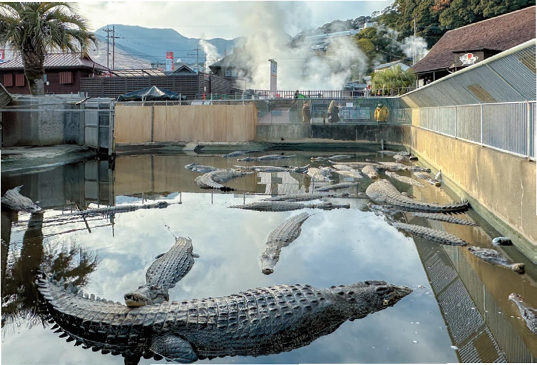 大正時代に温泉熱で飼育を始めた、日本のワニ飼育のパイオニア的存在。ワニは本来熱帯に住む動物のため、寒さ対策で冬場は池に温泉を入れて温めている。約70頭がのびのび生活する姿は実にキュートだが、毎週土・日曜10時、大迫力の餌付け見学も要チェック。“地獄”の名に納得すること間違いなし。住所:別府市鉄輪625