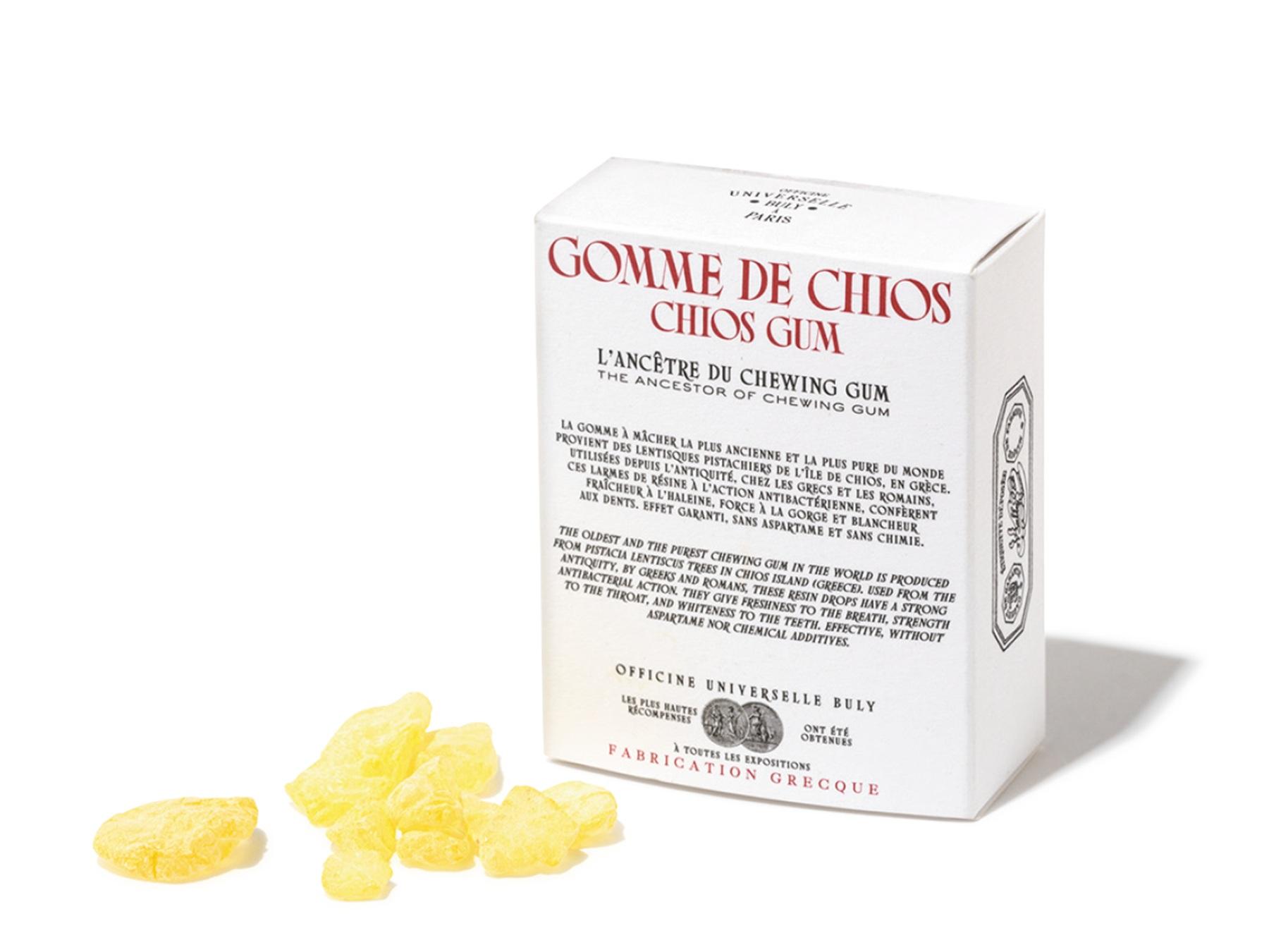 清浄作用がある、ギリシャのキオス島に生息するマスティハの木が原料。1回3~4粒を20分程度噛むことで、口臭をケアし、歯垢も除去。50g ¥4,400(オフィシーヌ・ユニヴェルセル・ビュリー/ビュリージャパン)