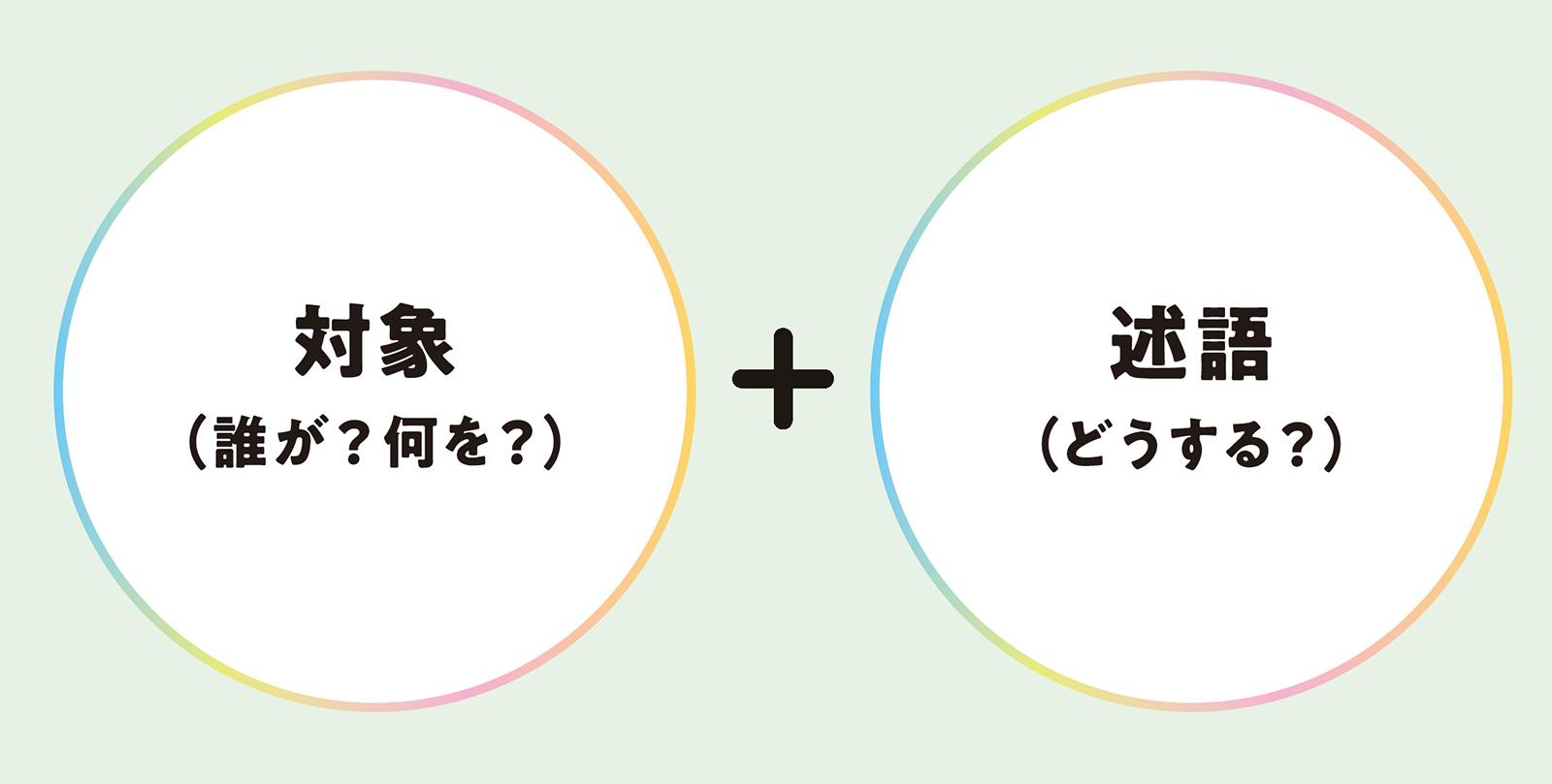 難しく考える必要はなく、「ビジネスメールを(対象)」「書いて(述語)」、「コーヒーについて(対象)」「教えて(述語)」といったように、まずは自分が必要としている事柄に対するシンプルな構成を作るのが先決。
