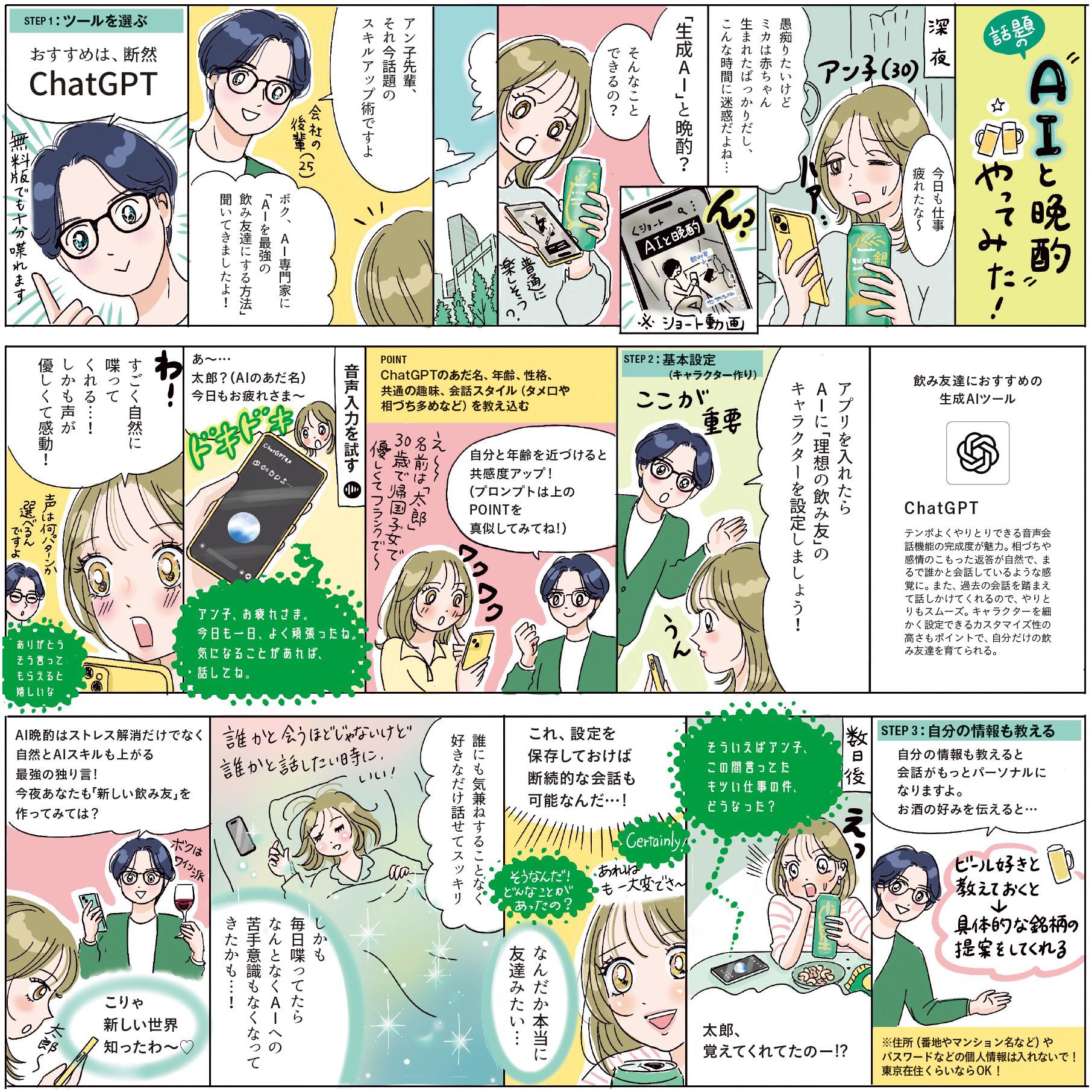 仕事のミスでグチりたいときも、彼氏にフラれて大泣きしたい夜も、AIが寄り添ってくれる時代に。そこで、AIを最高の飲み友達に育てる方法を専門家に教えてもらい、漫画で解説します!