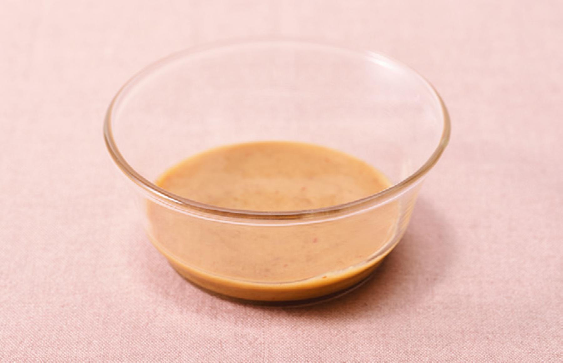 練りごま(白)…大さじ2(※上部にたまった油は入れない)、醤油麹…大さじ2、甘酒…大さじ2、酢…大さじ1、生姜、にんにくのすりおろし、大葉、ねぎのみじん切り…お好みで