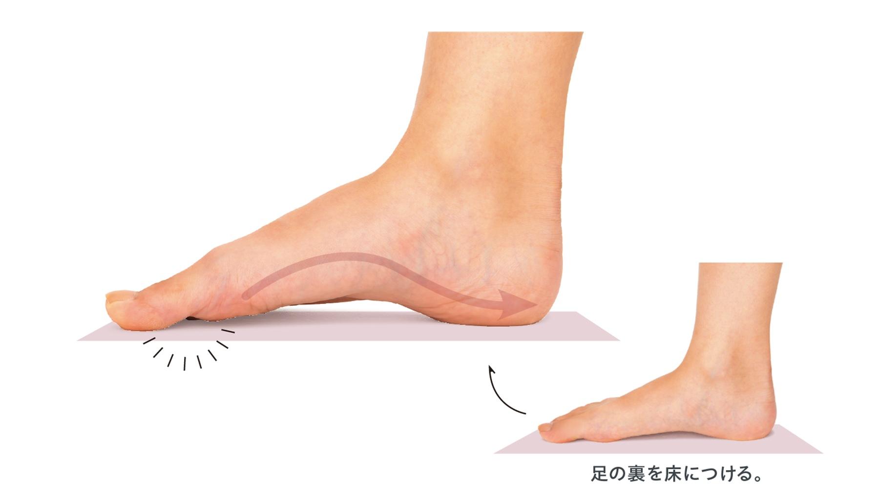 足のインナーマッスルが衰えると、足裏のアーチが下がって外反母趾やタコの原因にも。足裏にドームをつくるようにギュッと縮める動きで筋肉が刺激され、足元が安定して姿勢の改善や立位・歩行時の安定性も増す。