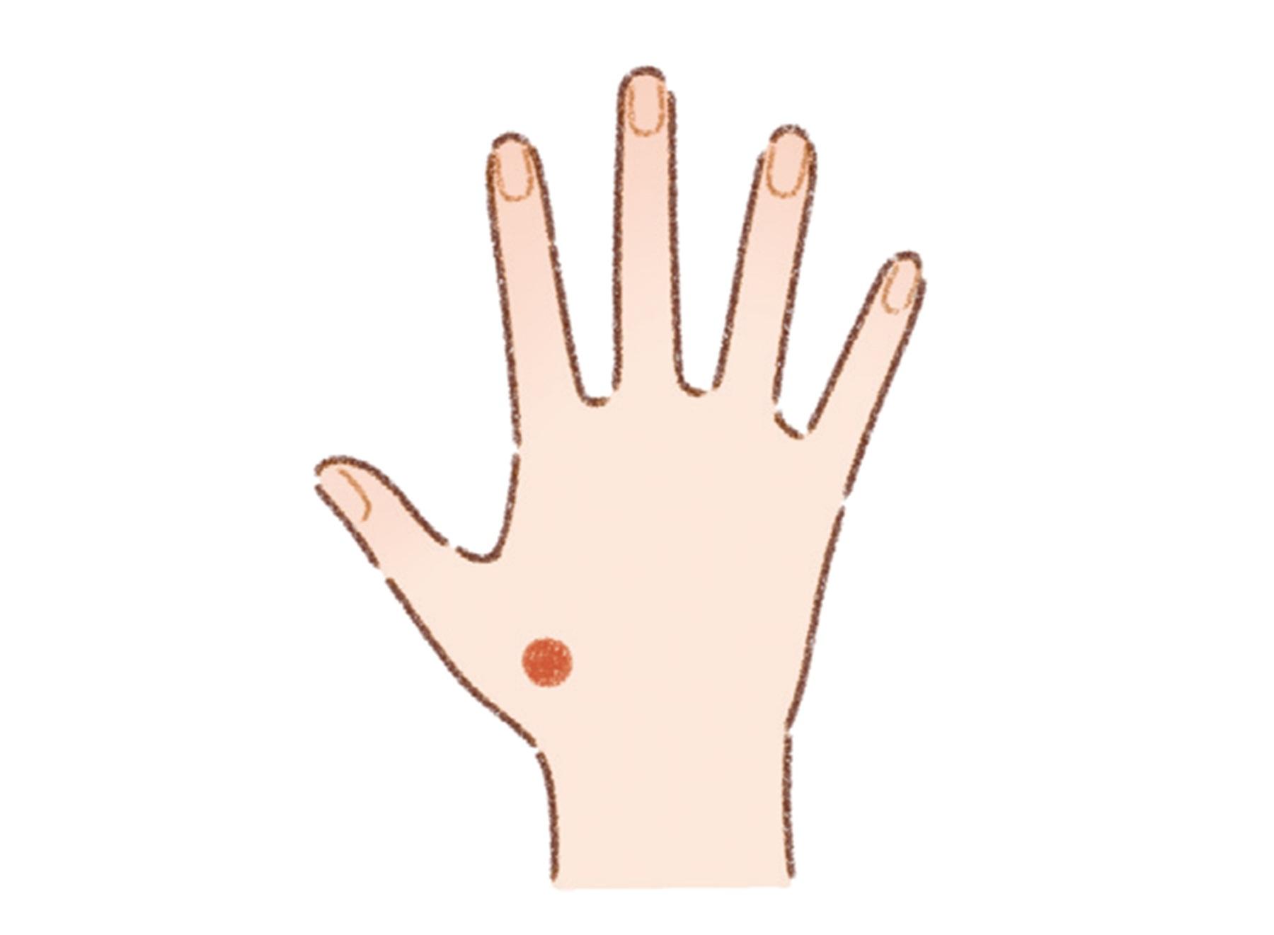 冷えからくる肩こりや代謝低下、肥満まで/手の甲の、親指と人差し指の骨が交わるところから、約1cm指先側のくぼんだところにあり、押すと鈍い痛みを感じることも。冷えからくる肩こりや頭痛だけではなく、汗かきで口が乾燥しがち、赤ら顔、便秘などにも効果的なツボ。また、年齢を重ねることで起こる、代謝の低下による肥満にも有効で、幅広い症状に対応する万能なツボとしても知られている。ドライヤー温灸の前に、反対側の親指の腹で、押し込むようにギューッと圧をかけて刺激してから温めると、より効果が高まる。