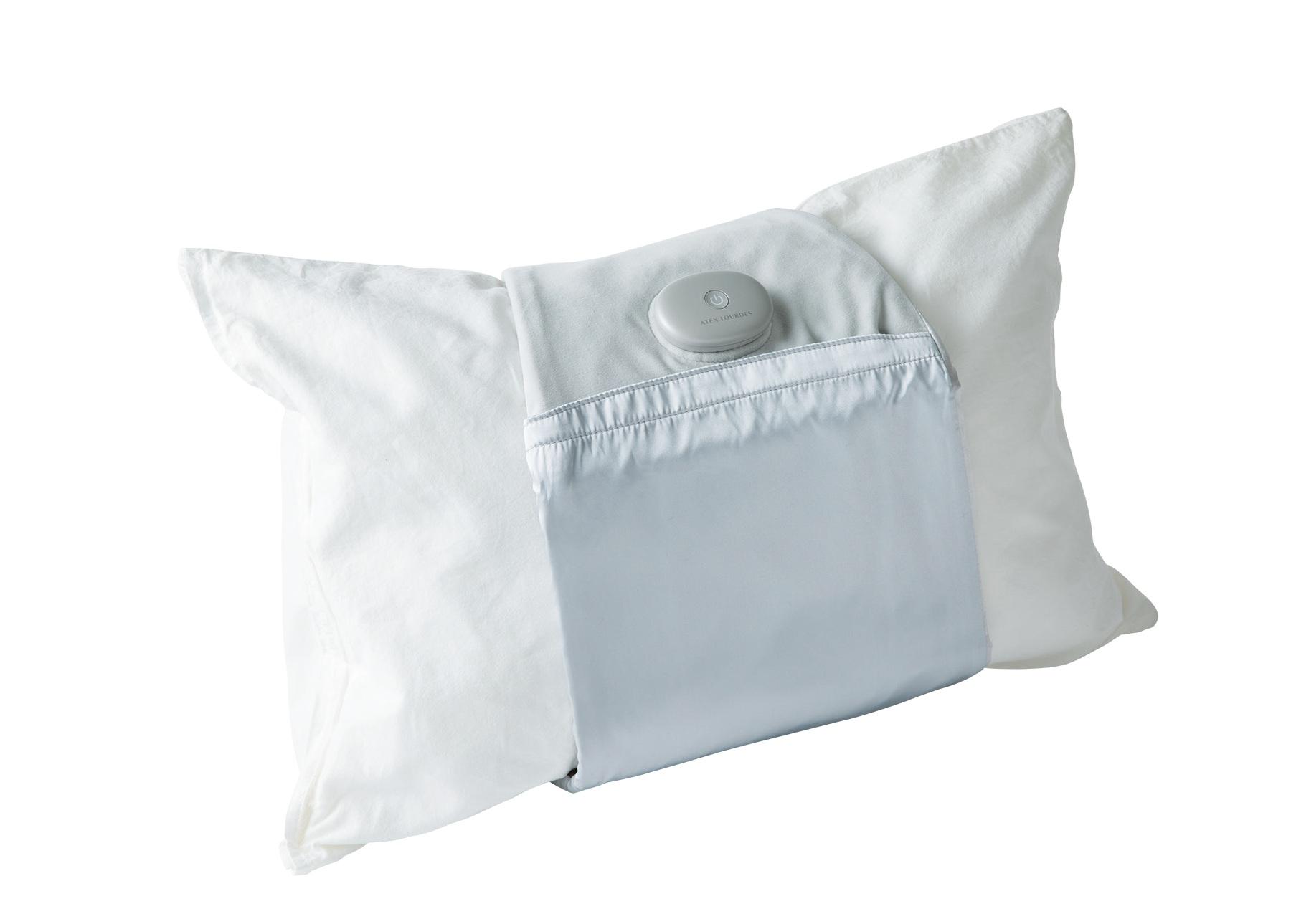 いつもの枕に巻いて使う充電式の首元専用ヒーター。冷えやすい首や肩まわりがほんのりと温まり、心地のいい眠りにアプローチ。温度は約38°C、約42°C、約46°Cの3段階から選ぶことができ、約20分で自動的に電源がオフになるタイマー付き。カバーの表面には上質なシルク100%を使用することで、髪や肌に優しい素材感に。コンパクトに持ち運べるので、旅先でも活躍間違いなし。¥7,700(アテックス TEL. 0120-486-505)