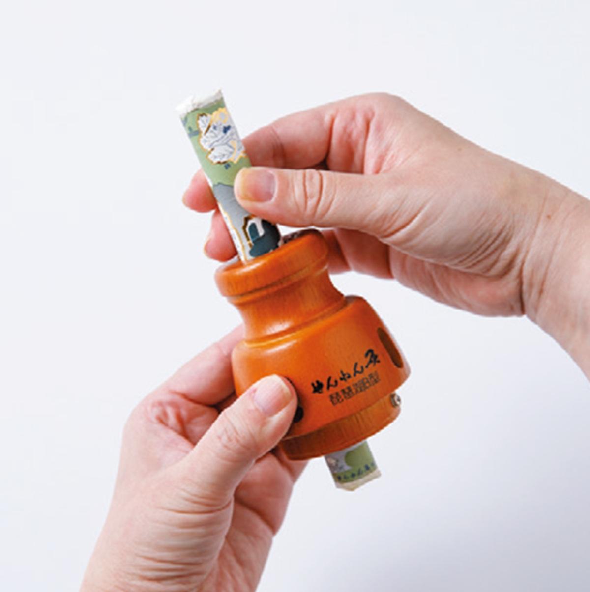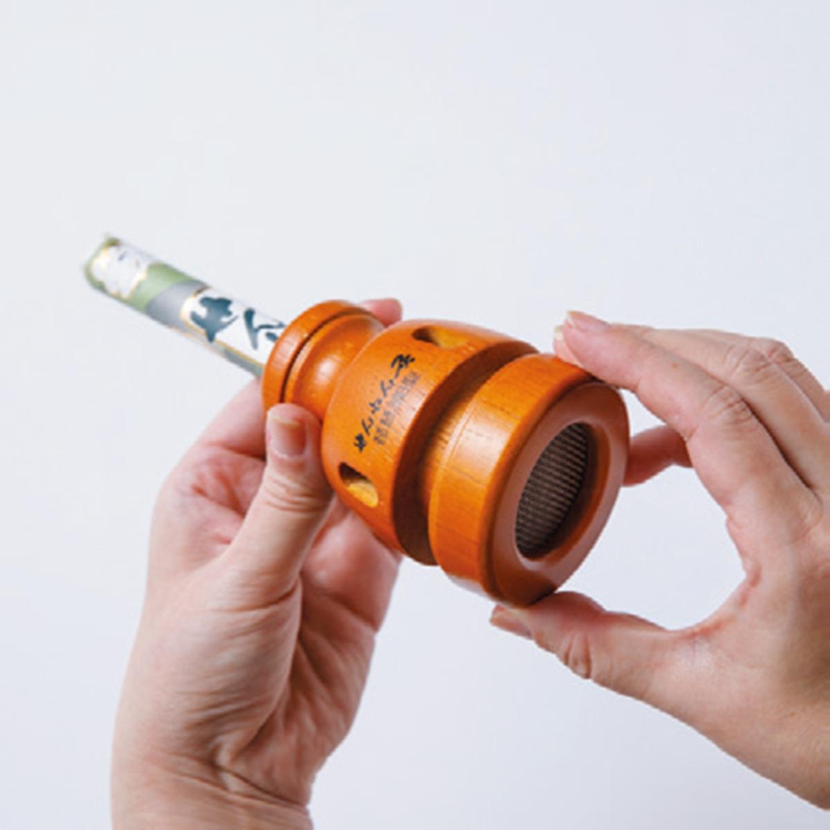 個性的なルックスに心惹かれるこちらのアイテムは、「棒温灸」と呼ばれるもの。細長い棒状のもぐさに火をつけ、木製の本体に差し、受話器のように耳に当てて使用。すると、他のものではなかなか出合うことができない、耳全体がじんわりと包み込まれるような、心地のいい温かさを味わえる。火種の位置を上下に調節することで、温熱の強弱がコントロールできるのも嬉しいポイント。プレゼントにも喜ばれそう。